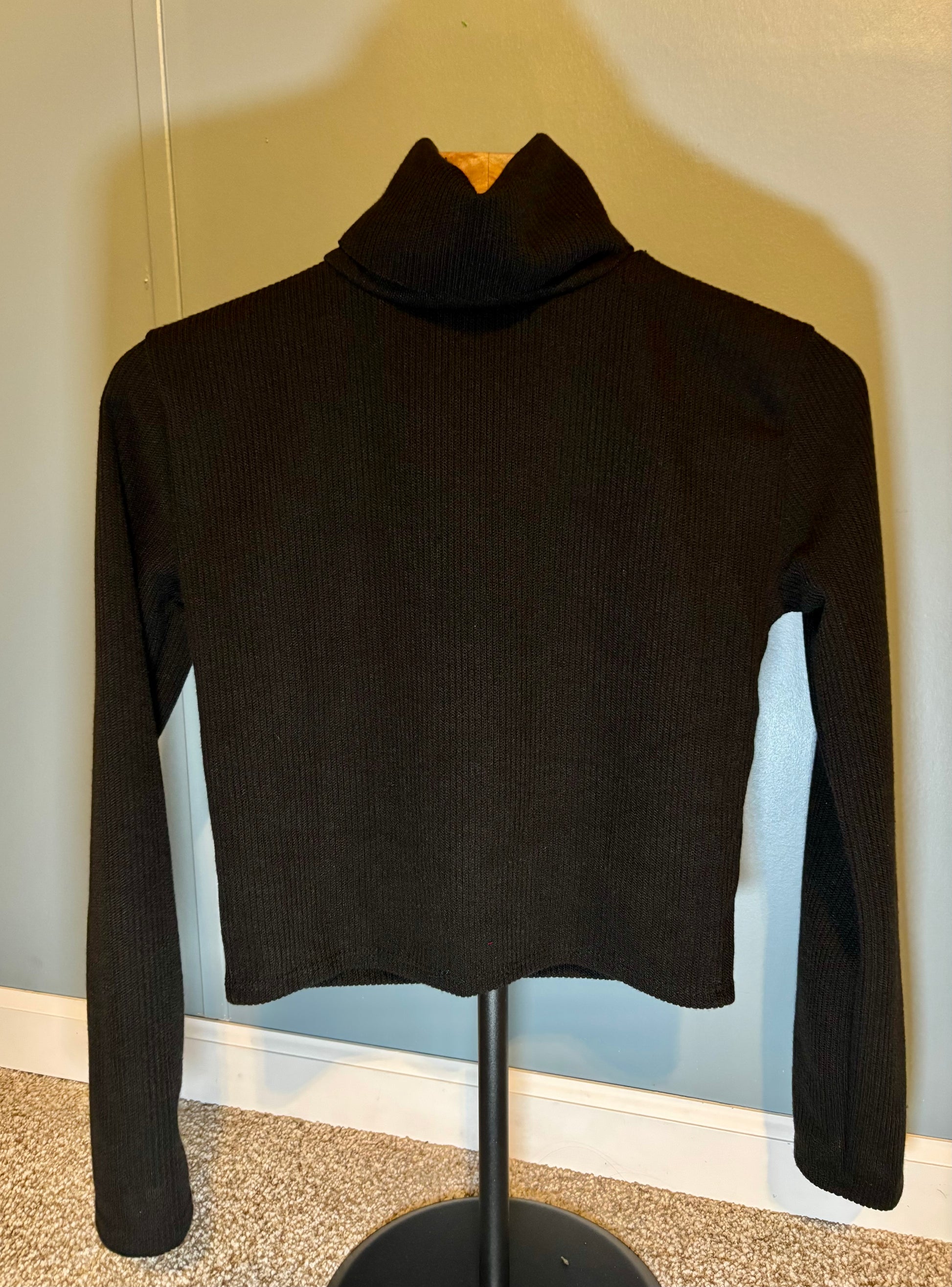 Cozy up in this classic black ribbed turtle neck—the ultimate cropped layering essential that plays well with literally everything in your closet. The fitted long sleeves and cuff keep things polished, while the soft ribbed fabric hugs you just right. Whether you're pairing it with your favorite jeans, a sleek skirt, or tailored trousers, this timeless piece is ready to become your go-to for effortless style all season long. It’s recommended to size up!